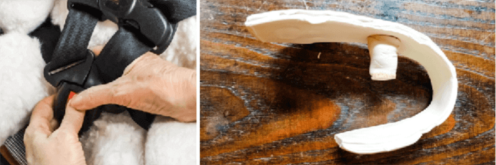 她使用热塑夹板制造了第一个儿童汽车座椅安全扣的解锁器,这虽然看起来无比粗糙和简陋,但它却能很好的工作,完美的解决了拇指缺乏力量而不能打开安全扣的问题。